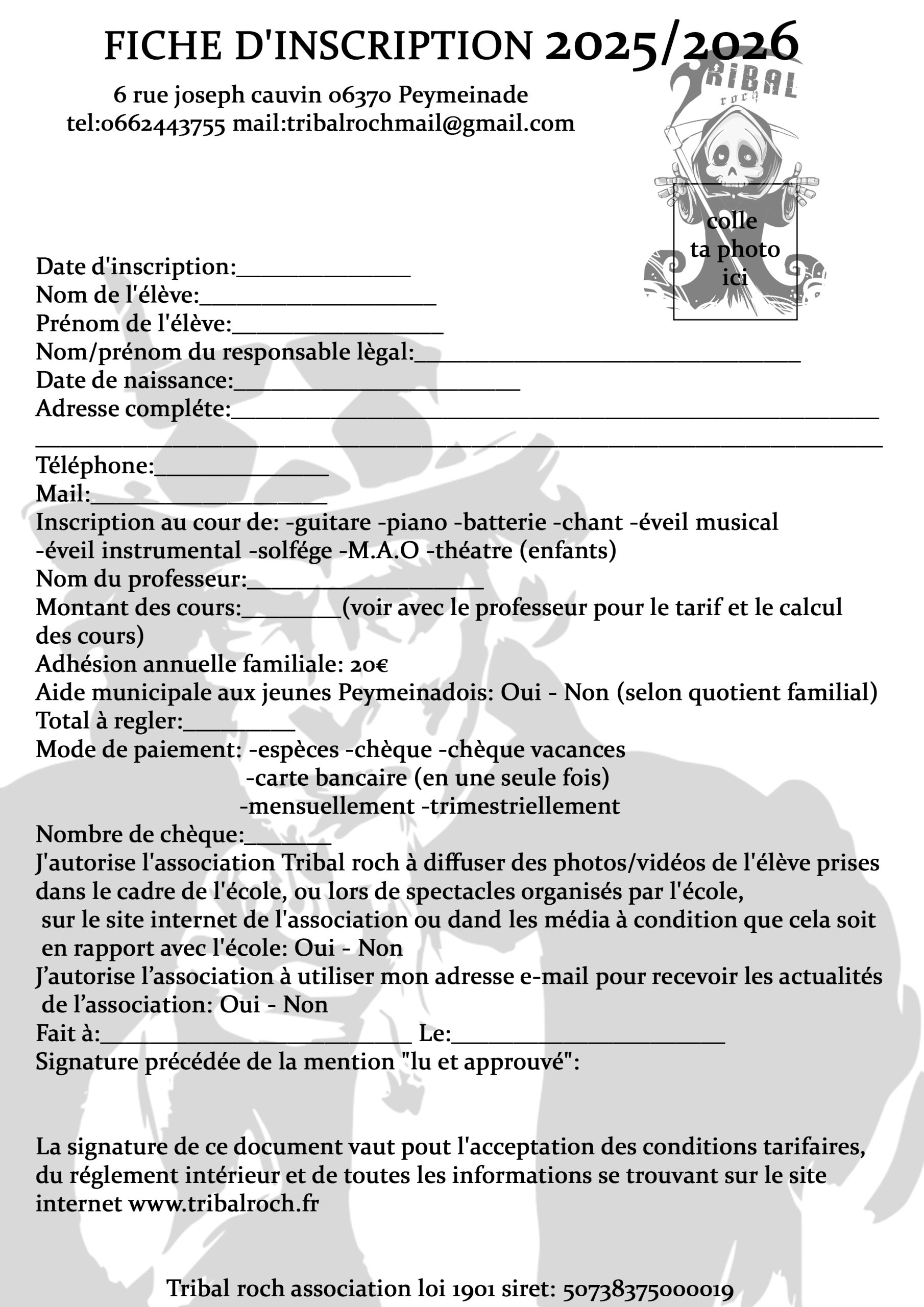 - Téléchargez la fiche d’inscription en cliquant ici : Imprimez-la, remplissez-la.